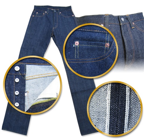 *ボタンは鉄製ですのでジーンズの経年変化により錆が出ます。早い段階で錆が出る 場合もございますが、鉄製ボタンの持つ一つの個性・味としてご理解下さい。