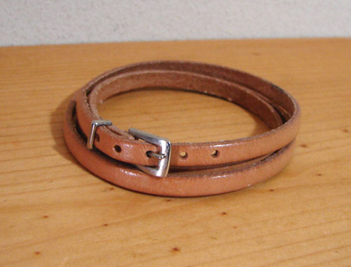 腕に3連に巻き付けるミニチュアベルトのようなブレスレットで、細くてさりげないデザインが、男女を問わず装着できます。