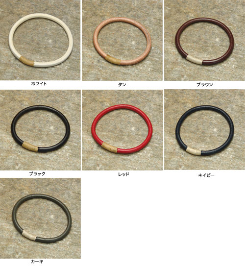 0.5cmの丸いレザーレースを、ロウビキ糸を使い手縫いで、縫い合わせたループ(輪)タイプのブレスレットです。