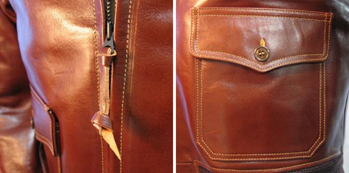 AN(アーミーネイビー)合同装備のAN-6552は一昨年に続いてのラインナップ。透明度のある赤味のラセットブラウンの馬革は1,4ミリほどの重厚なもの。この種のジャケットでは珍しい明るめのラセットブラウンとライトゴールドのファーとのバランスが絶妙。